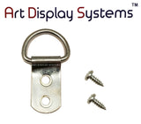 - The D-Ring Hangers are 1 3/4” Long x 1” Wide (at widest point) and 5/8” Wide (at the body of the hanger)