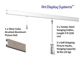 Art Display Systems Silver Click Rail w/ Twister Steel Cables Starter Kit